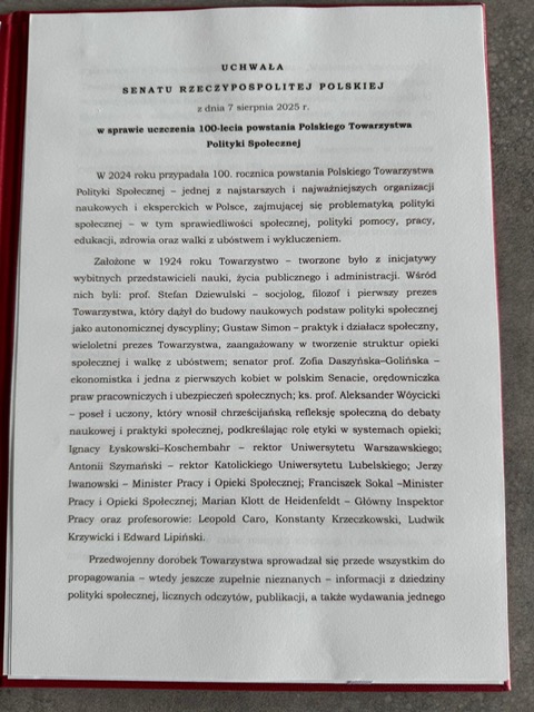 Jesteśmy dumni z docenienia prac PTPS w rozwoju współczesnej polityki społecznej.